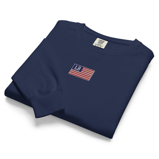 LB USA Flag Embroidered Unisex Garment-Dyed Sweatshirt